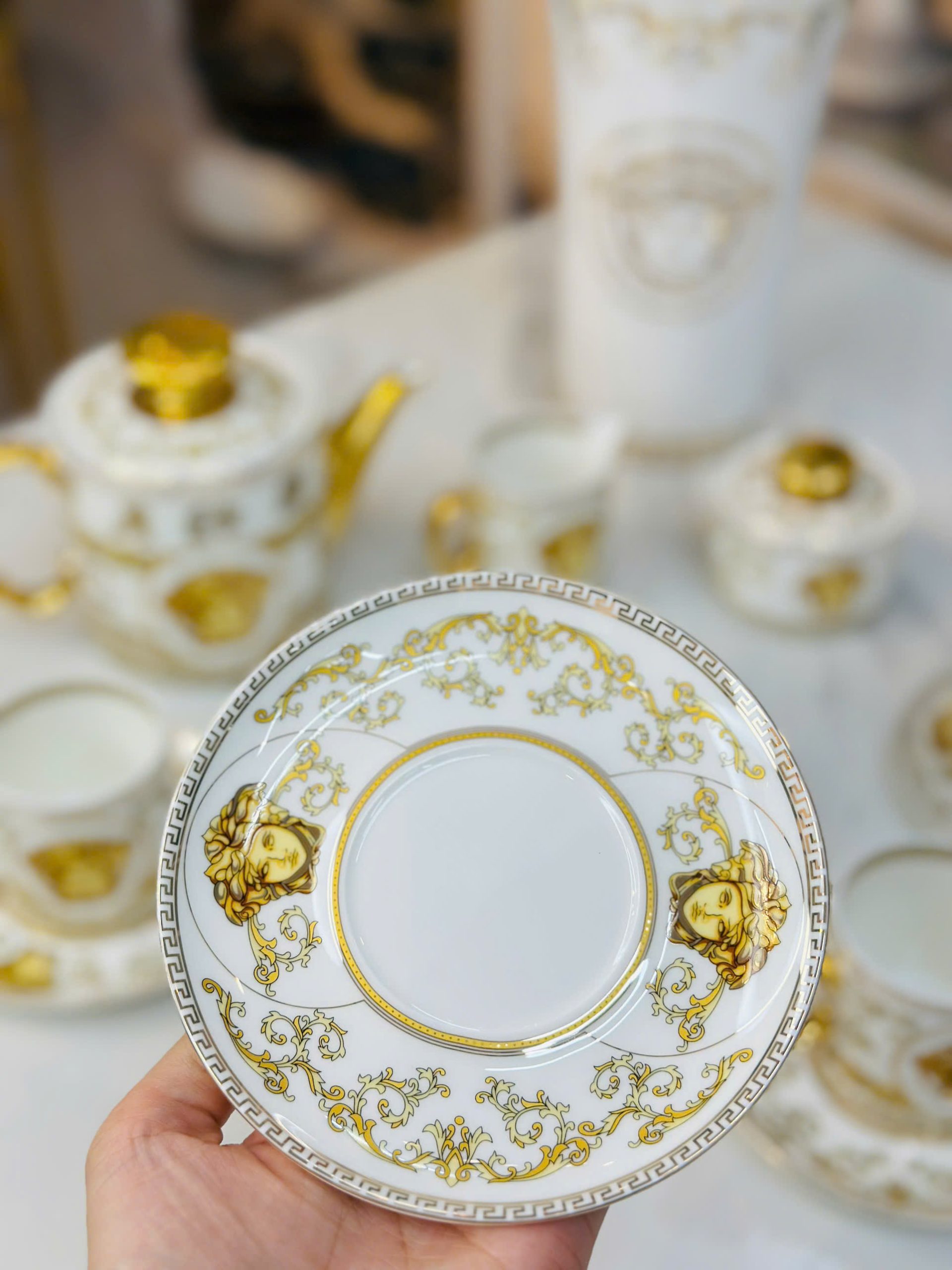 Bộ ấm chén uống trà sứ xương cao cấp họa tiết Versa.ce mang phong cách sang trọng, tinh tế, lý tưởng cho những buổi thưởng trà đẳng cấp. Được chế tác từ chất liệu sứ xương bền đẹp, giữ nhiệt tốt, bộ ấm chén giúp trà giữ trọn hương vị tự nhiên, đồng thời tạo điểm nhấn thẩm mỹ cho không gian.