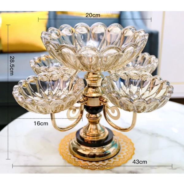 Khay Đựng Bánh Kẹo, Mứt Tết 5 Tầng Thủy Tinh Khung Mạ Vàng Cao Cấp – Sang Trọng, Hàng Sẵn Có